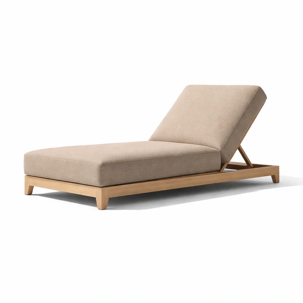 Liegestuhl aus teakholz mit verstellbarer lehne und kissen
