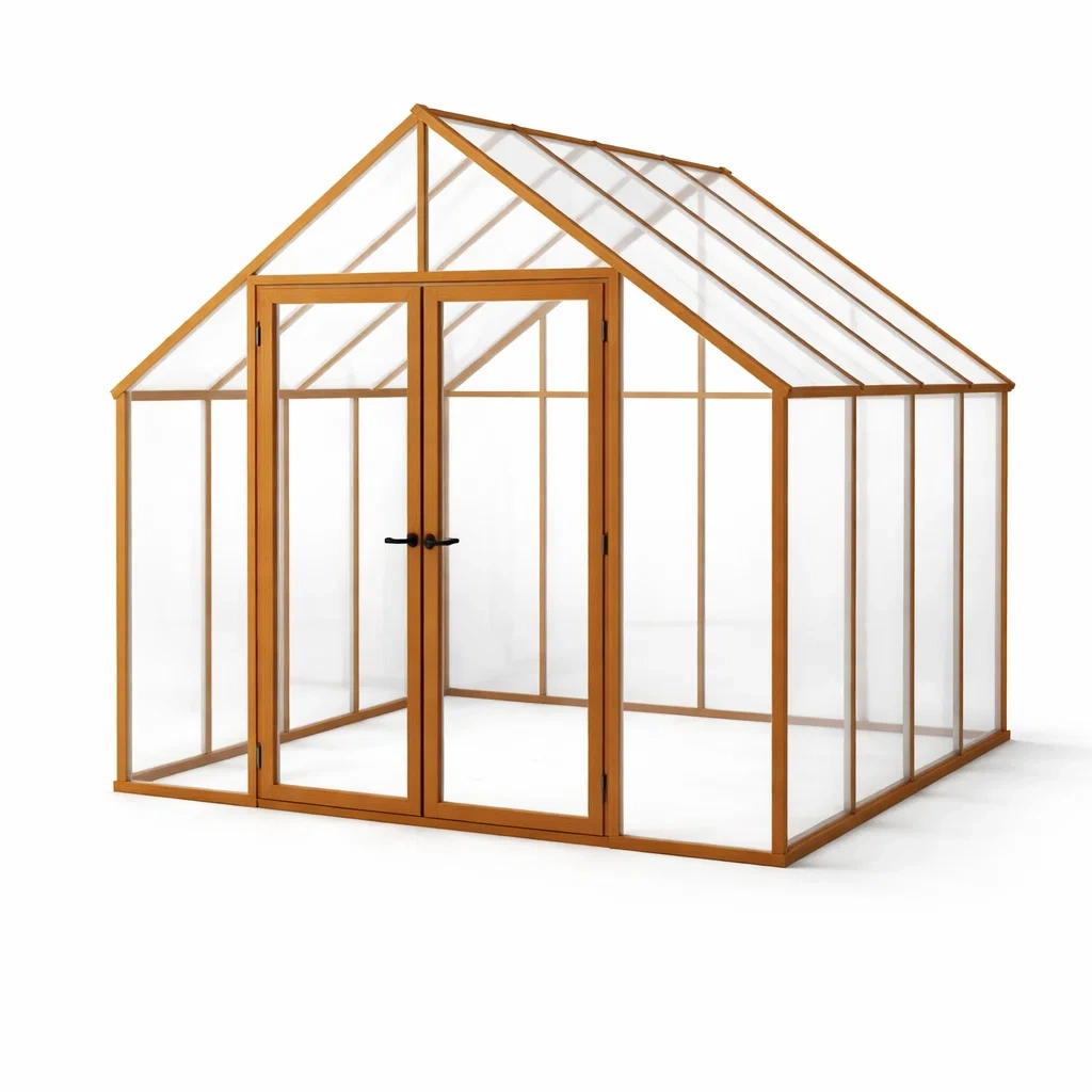 Gewächshaus aus aluminium holzoptik mit polycarbonat doppel-flügeltür 300x200x250 cm