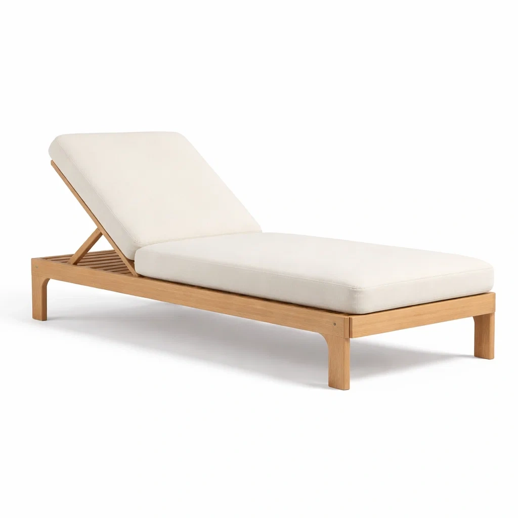 Liegestuhl aus teakholz mit verstellbarer lehne und kissen
