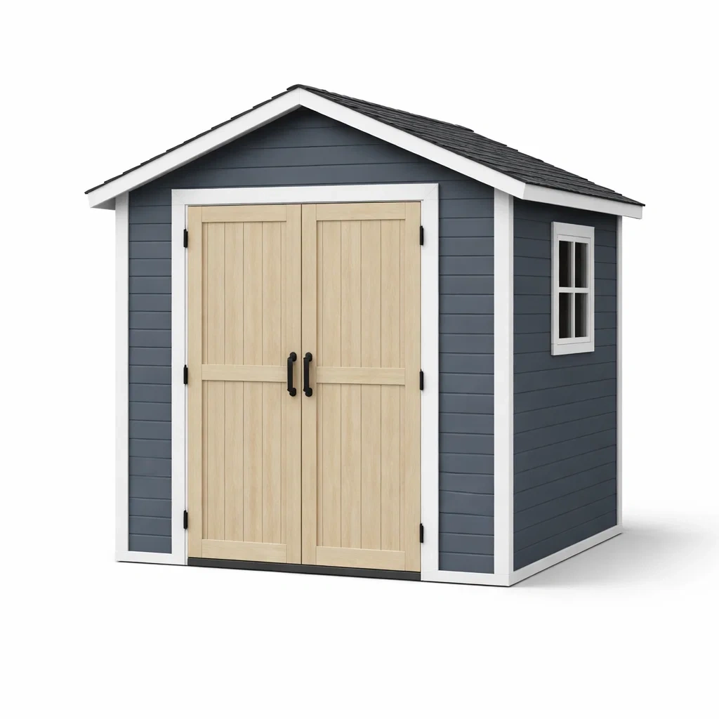 Material: Dach aus Bitumen, Wände aus Polypropylen, Türen aus Kiefernholz